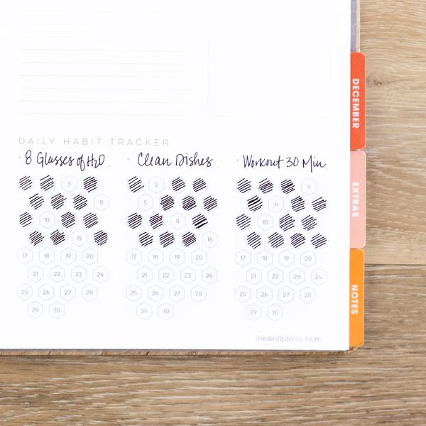 I just found out about the liveWELL Planner last week and it seems to cover all most everything you need in life. There is a travel log, monthly bill tracker, gift list, yearly planning sheets, and monthly goal trackers. The design of the weekly calendar spreads are great. This planner has a daily habit tracker for those who are trying to make new commitments and habits. They also carry fitness and meal planners. They are a one stop shop! The site even offers videos to help you get started with your planner.